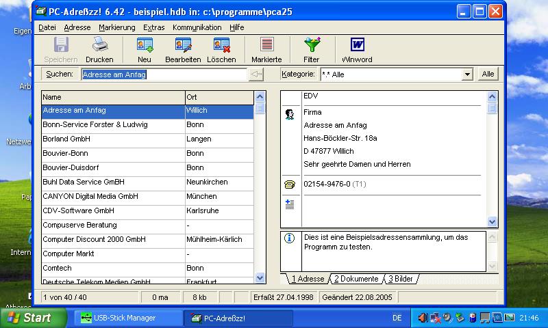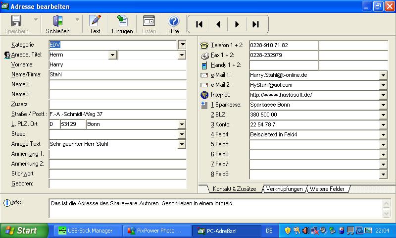 Obenstehend der Dialog zur Bearbeitung einer Adresse.